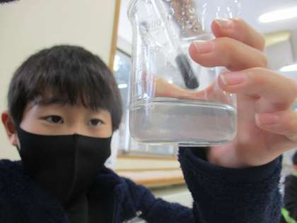 水を蒸発させて、水に溶けたものを取り出すことができるのか実験しました。