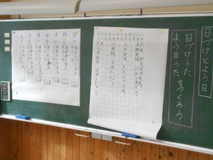 1年生は国語科で、「日付けと曜日」を入れながら短作文を書きました。いつ、何が、どうしたが分かるように書きました。