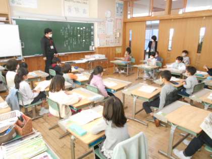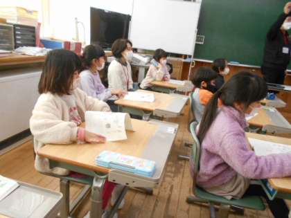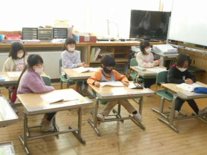 1,2年生は国語科の学習に合同で取り組みました。冬の季節から思いつく言葉を出し合い、生活経験を伝え合いました。