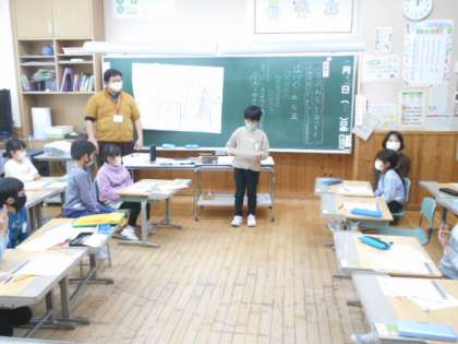 小グループで、友達にぴったりなイメージの言葉を選んだり、選んでもらったりする関わりも交えながら異学年合同で学習しました。