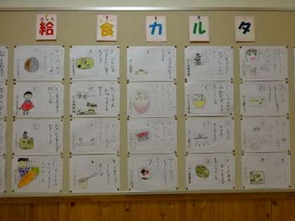 また、給食週間中を利用し、給食の調理に携わる調理員や栄養教諭へ感謝の気持ちを伝えるメッセージや手紙を書いて渡したり、給食カルタを作ったりします。