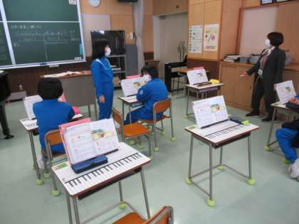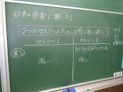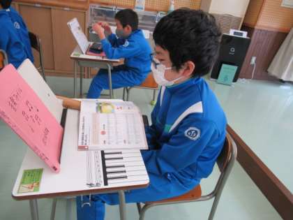 5年生は音楽科で、2つの旋律の違いを比べて、それぞれの旋律に合わせた歌唱表現を工夫しました。