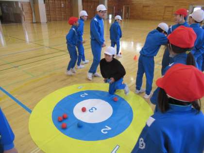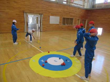4〜6年生は体育で「ボッチャ」に取り組みました。ボールをねらいを定めて投げたり、チームで作戦を考えて協力したりして楽しみました。