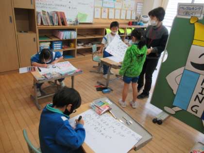 1年生は生活科で、山田保育所年長児との交流会に向けて準備を行いました。小学校のことを教えるクイズ等、分かりやすく伝えられるように工夫しました。