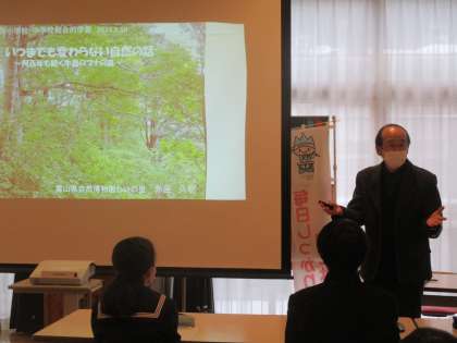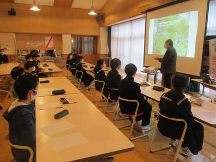 富山県自然博物園ねいの里より講師の方をお招きし、山田の自然について講演をしていただきました。変わらぬ自然として「牛岳のブナ林」、移り変わる自然として「イノシシやニホンジカの増加」について、興味深い話を聞くことができました。貴重なお話を、今後の学習に生かしていきます。
