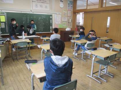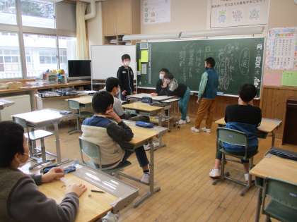 地域の方に感謝の気持ちを伝える方法を話し合いました。お世話になった場面を思い浮かべながら、誰にどのような形で感謝を伝えようかと真剣に考えていました。