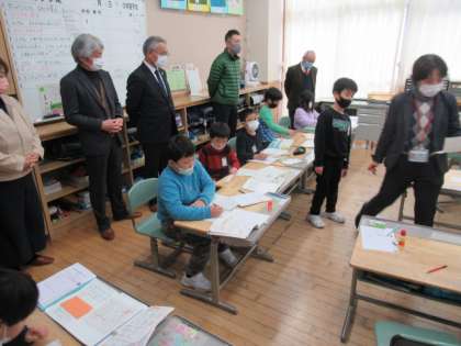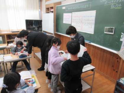 1,2年生は、自分が取り組みたいプリントを選んで算数の復習をしました。