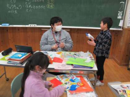 2年生は図工科で、ストローの軸を動かすことで、別の部分も動き出す仕組みのおもちゃ作りに取り組みました。パタパタとテンポよく動く様子に興味をもっていました。