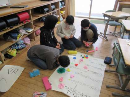5年生は卒業を祝う集会に向けての準備を行いました。全体の進行表やプログラム作りなど、役割を分担して進めていました。