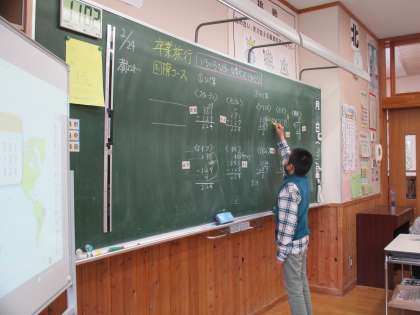 算数卒業旅行、今日は「国際コース:いろいろな国の計算方法を知ろう」です。引き算や割り算の筆算方法が、国によって異なることや、各国の筆算方法がどのような仕組みになっているかを学びました。