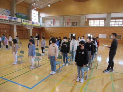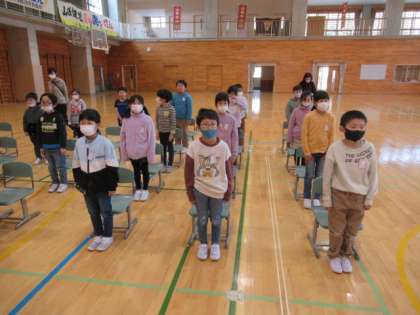 1〜5年生は卒業式の練習を行いました。みんなで声を合わせてセリフを言ったり、6年生一人一人へのメッセージを語ったりしました。