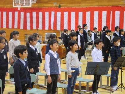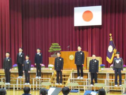 卒業生は門出の言葉で、6年間の思い出や、お世話になった方々への感謝の思い、未来に向けたメッセージを語りました。また、「旅立ちの日に」を2部合唱で歌いました。