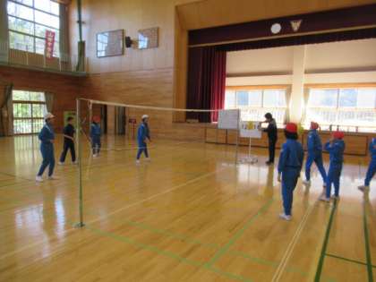 4,5年生は合同でバレーボール型ゲームを行いました。トスでボールを繋ごうと活動している姿が見受けられました。