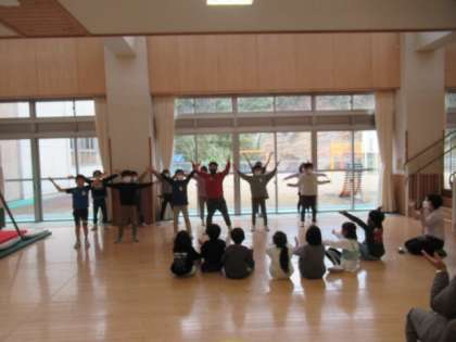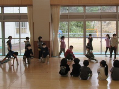 1・2年生合同学活で、2年生から、校長先生、教頭先生、小宮先生、1年生に向けてサプライズで、ダンスを披露しました。披露した曲は、「YMCAヤングマン」です。子供たちは、自分たちで考えた振り付けで踊りました。