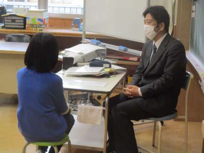 担任は、頑張ったこと、伸びたこと、これから頑張ってほしいことを一人一人に伝えました。子供たちからは、3学期のがんばりを褒められて、うれしそうな表情が見えました。