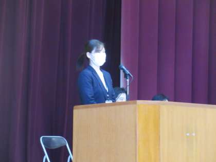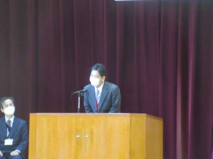 小中合同離任式を行いました。小学校は3名の先生が転出されます。