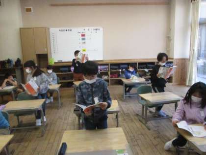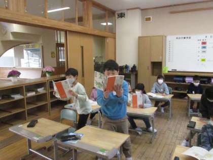 教科書の音読をしました。今日は、たけのこ読み(自分の好きなところを立って音読する読み方)で音読をしてみました。