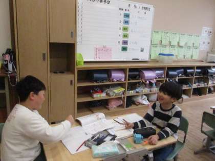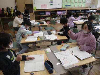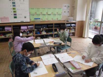 かけ算の学習中です。じゃんけん大会を行い、得点をかけ算で求めました。
