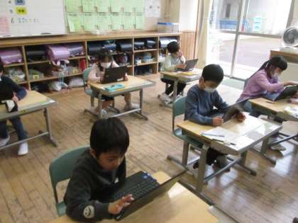 学校のまわりをGoogle mapの機能を使って、上空から見てみました。学校の東西南北の土地の様子を知ることができました。
