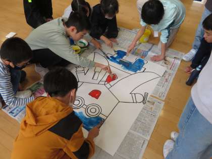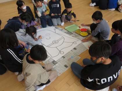 マスコットキャラクターの色塗りを全校に呼びかけて行いました。