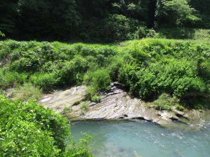 上:川の水の音がいつもと違うなぁ。今日は水の量が少ないなぁ