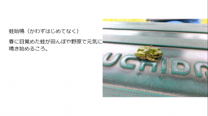 身近な二十四節気や七十二候を探しました。クロムブックで写真をとり、スライドにまとめています。