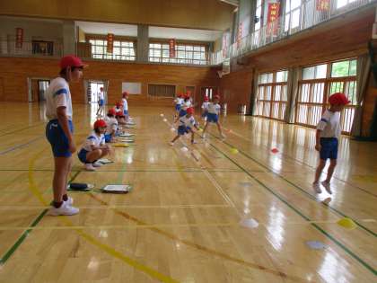 今日は反復横とびと上体起こしを計測しました。昨日と同様、高学年が低学年にやり方を教えながら取り組みました。