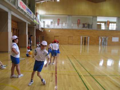 子供たちは目標をたててシャトルランに臨みました。記録を数える子供たちは「あと○回で目標を達成するよ」「がんばれ」と声をかけていました。