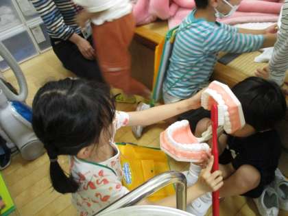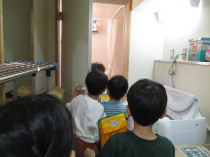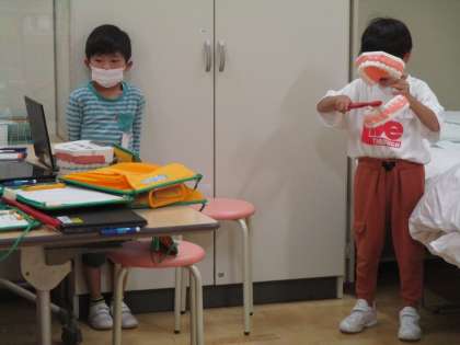 「家みたいだね」「歯をみがく練習ができるね」クロムブックを使って動画を撮ったり、紹介するための説明を考えたりするなど、子供たちは楽しく学習していました。