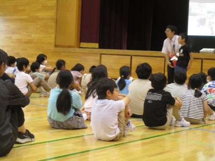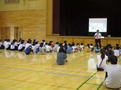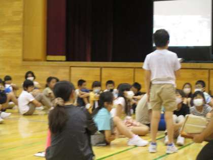 土砂災害を想定した避難訓練を行いました。子供たちは真剣に校長先生の話や防災担当の先生の話を考えながら聞いていました。