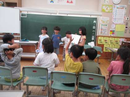 今日は、なぞなぞ係がクイズを発表する日でした。物語のクイズ、教養クイズもあって低学年では難しいような問題もありましたが、子供たちはたくさん手を挙げて答えていました。