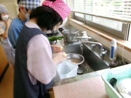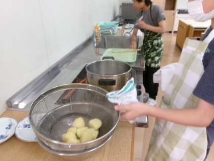 今日は、ゆでる調理の学習で、「青菜のおひたし」と「ゆでいも」を作りました。手順や役割を確認しながら、グループの友達と協力して調理に取り組み、野菜によってゆで方が違うことや、ゆでると状態が変わることを確かめました。