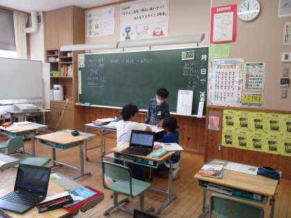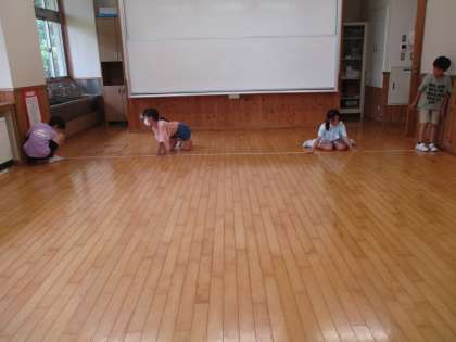見当をつけながらまきじゃくを使って長さを測っていました。まきじゃくの使い方にも慣れてきて、まくじゃくを持つ人、記録をとる人など活動もスムーズになってきました。