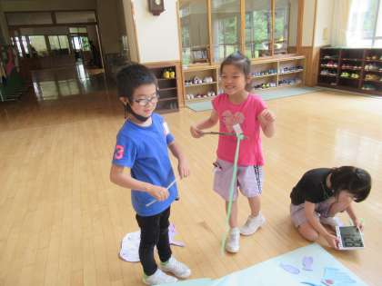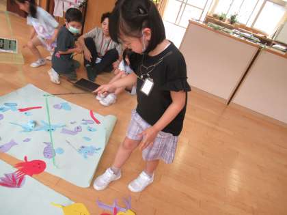 先週、クラフト係が考えた魚釣りゲームを休み時間にしました。魚を釣る時間やポイントを変えるなど、面白くなるように工夫していました。みんな魚釣りゲームに熱中していました。クラフト係さん、ありがとう。