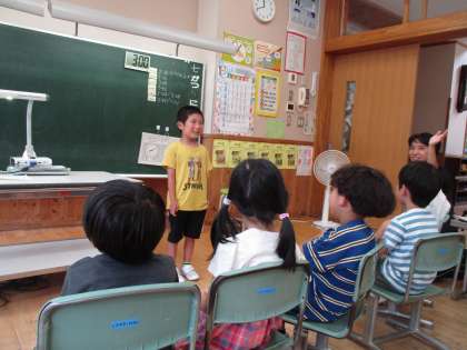 国語の時間で好きなものを発表しました。理由をしっかりお話をすることができました。また友達の質問にもてきぱき答えていました。
