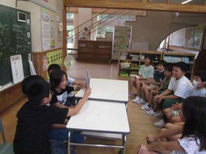 係活動の様子です。お話係が、手作りの紙芝居を作り、読み聞かせを行いました。読み聞かせする方も見ている方も笑顔で溢れる読み聞かせになりました。