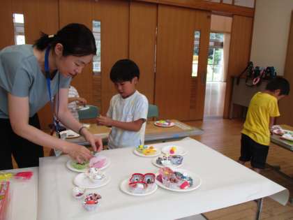 「茶色を作りたいけど何色を混ぜたらいいかな」「今日は飲み物も作りたいな」「チーズバーガー食べたいから作ろうかな」子供たちはアイディアでいっぱいです。