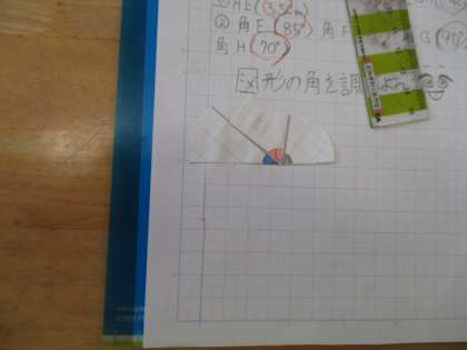 三角形の内角の和を確認するには、自分の目で確認することが一番です。三角形を丁寧に描いてはさみで切る子供たちの顔は真剣そのものです。夏休み明けとはいえ集中しています。