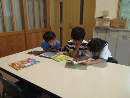 少しずつですが秋の風が吹いています。子供たちはそれぞれ好きな場所で読書を楽しんでいます。「もう時間になったよ」と話しかけると「もう時間?早いなぁ」と言葉を返す子供たち。本の世界に入り込んでいます。