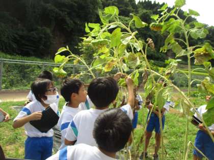 理科の学習で植物の育ち方を学習している子供たち。今日はオクラから56個、ヒマワリからは144個の種がとれました。「1個の種からこんなにとれた」と大喜びでした。