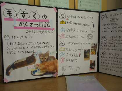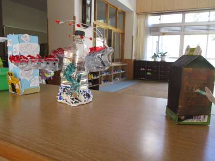 子供たちがニコニコしながら取り組んだ様子が目に浮かびます。他にもたくさんの作品が展示されています。