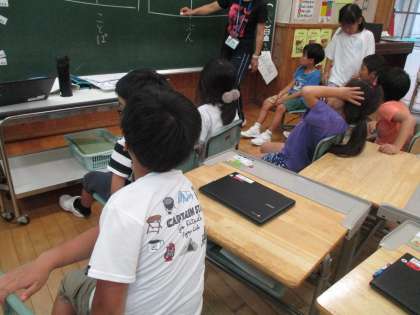 1、2年生は次の保育所交流の計画を実行中。今日はカルタの絵やクイズの文章や出し方を考えています。楽しい交流のために準備に余念がありません。