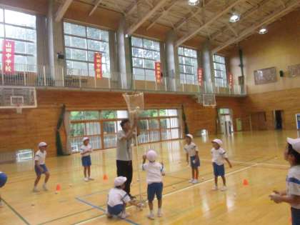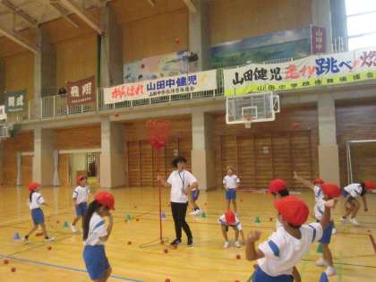 運動会が迫ってきました。下学年の団体種目は玉入れです。玉がより多く入るように練習しています。
