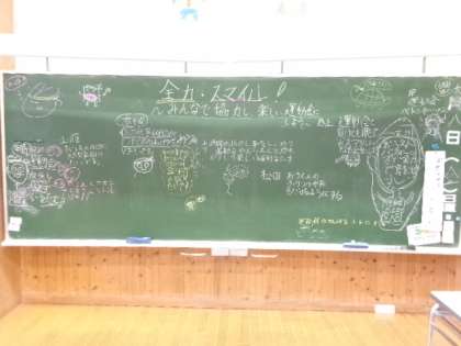 上学年の教室の黒板には、子供たちの運動会への思いが書かれています。