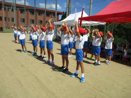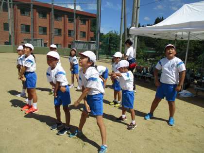 下学年で上学年の種目を応援します。大きな声が出ています。来年も楽しみです。
