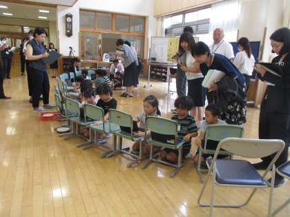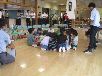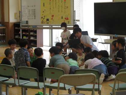 「すごいね」保育所の子供たちがカルタをとるたびに声をかけている子供たち。「こうやって飛ぶんだよ」「もう一回飛べそう?」たくさん声をかけながら言葉を選びながら考えて行動していました。