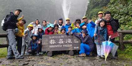 称名滝に着きました。水が勢いよく流れています。