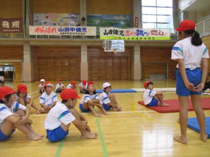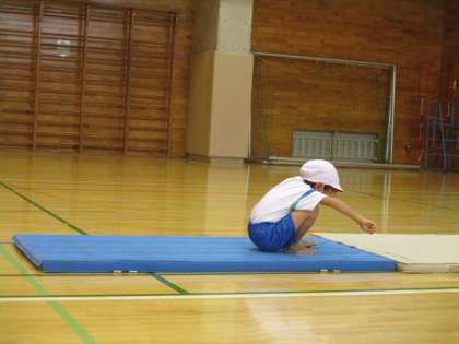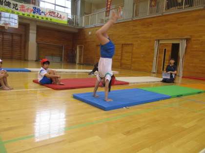 今まで学習してきたマットの技を発表しました。子供たちは注目してほしいところを発表してから技に挑みました。「がんばれ」「できるぞ」応援の声もあり、発表の終わりには拍手が自然と出てきていました。