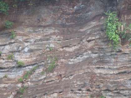 山田っ子は窓をのぞくとすぐに地層が見える環境で学習しています。「○○さんの家の裏にも地層が見えるよ」「土をもらってこようかな」「あの地層は水でできたのかな、火山かな」子供たちの好奇心は止まることはありません。
