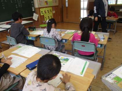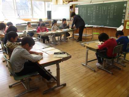 1,2年生と合同で書写を行うことで色んな気づきがあります。子供たちは良い字を書くポイントは鉛筆の持ち方と姿勢だということを確認しました。